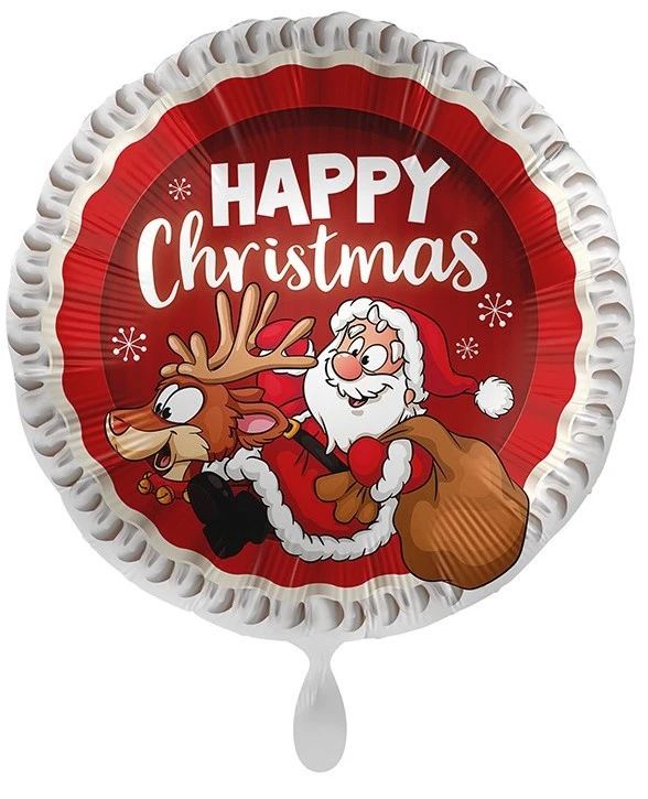 En rouge de Noël, ce ballon en aluminium Joyeux Noël de 71 cm est orné du père Noël et de ses rennes et célèbre les fêtes de fin d’année avec l’empreinte « Joyeux Noël » !